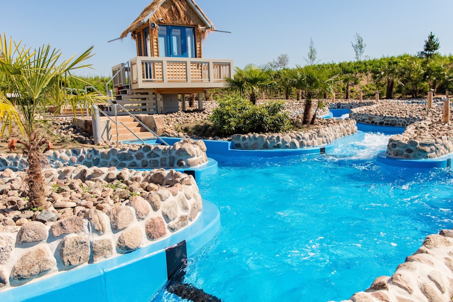 En verano e invierno, el área exterior AMAZONIA® ofrece piscinas, río Whitewater, campos de fútbol playa y zonas para tomar el sol. Incluso en los días más fríos, el agua climatizada permite seguir disfrutando en pleno invierno.