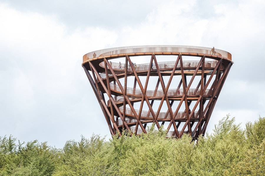 Adéntrate en la naturaleza danesa con esta excursión de día completo que comienza con una visita a la Torre del Bosque, un impresionante mirador de 45 metros en plena campiña. Recorre su pasarela elevada de casi un kilómetro entre las copas de los árboles y disfruta de sus vistas panorámicas de 360°. Después, con salida desde Copenhague por la mañana, continuarás el viaje en grupo reducido hacia la isla de Møn, donde te esperan los imponentes acantilados de Møns Klint, con paredes de hasta 120 metros, bosques milenarios y playas de guijarros bañadas por el mar Báltico.