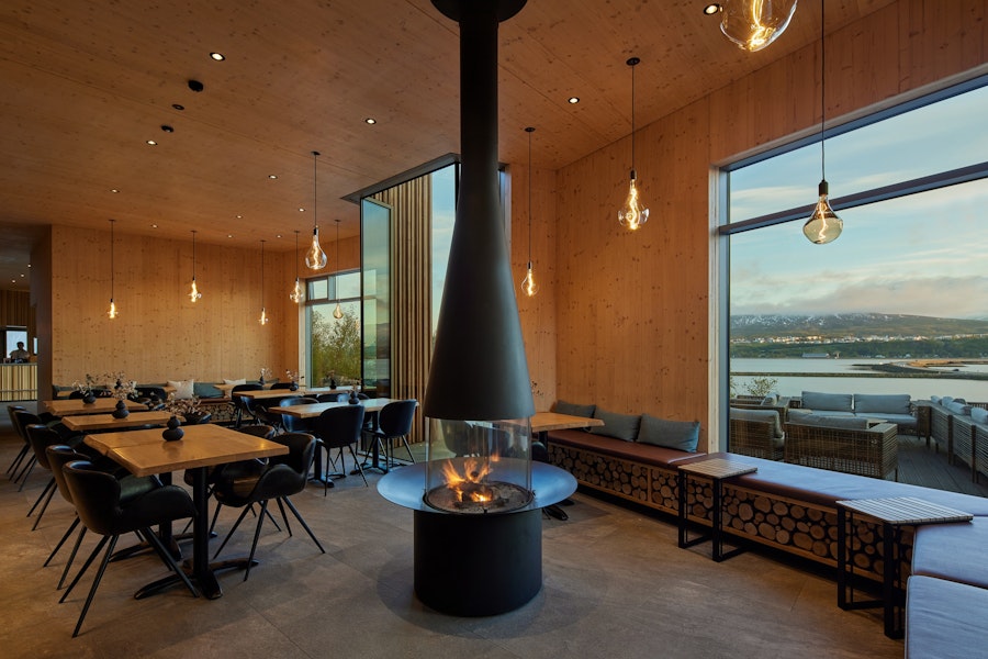 Para completar la experiencia, sumérgete en la sauna finlandesa seca, mantenida a 80 °C con baja humedad, que ofrece vistas panorámicas al fiordo Eyjafjörður. Cuando el calor sea demasiado intenso, refréscate en la piscina fría de 11 °C, una costumbre nórdica que estimula la circulación.